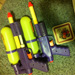 Water guns--do we need them? Going to. Ring two old coasters (see below the water guns) instead of plates. At least they're possessions and not trash :)